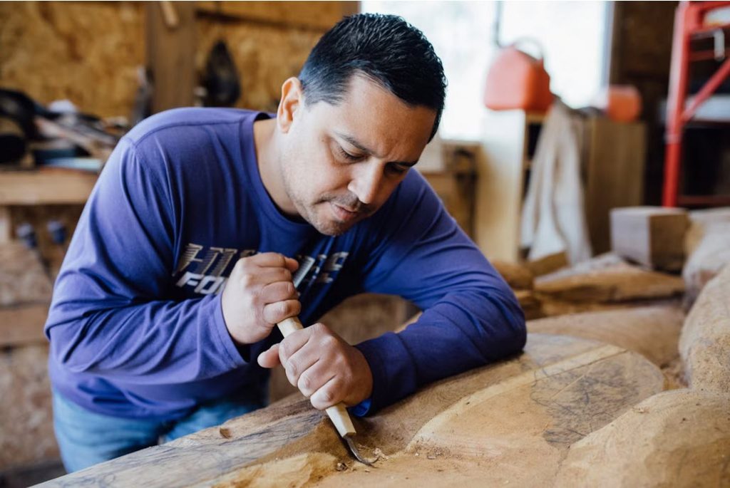 James Madison is a Tulalip artist whose work bridges tradition and innovation, carrying forward the stories of his Coast Salish heritage while creating contemporary forms that speak to audiences worldwide. A master carver, sculptor, and designer, James works in wood, glass, bronze, and other media, blending traditional Coast Salish design elements with modern techniques and perspectives.
