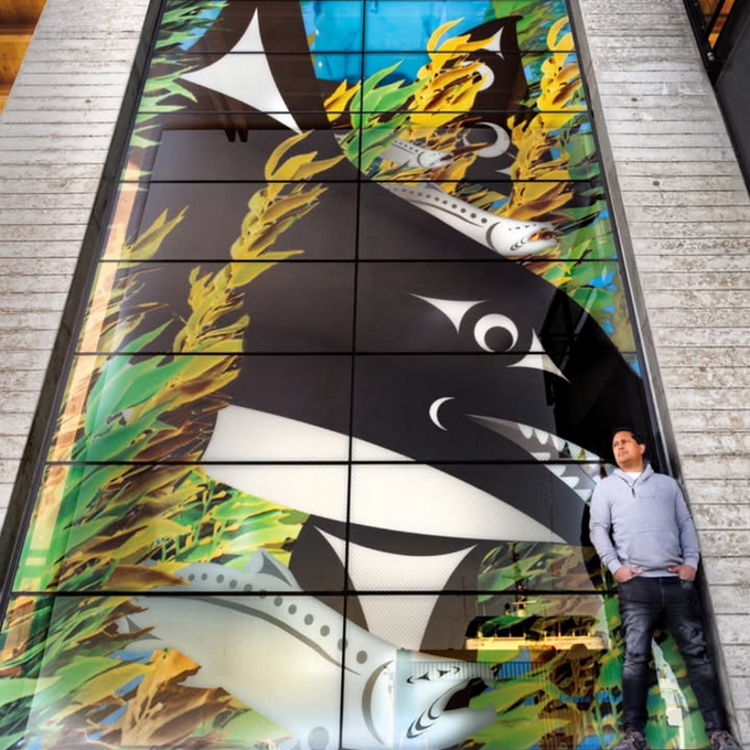 James’s portfolio ranges from monumental cedar totems and carved house posts to glass installations, prints, and bronze sculptures. His works are displayed in museums, cultural centers, hospitals, and public spaces throughout the Pacific Northwest, where they stand as both cultural landmarks and contemporary works of art. Each piece embodies the themes of community, resilience, spirituality, and connection to the natural world.